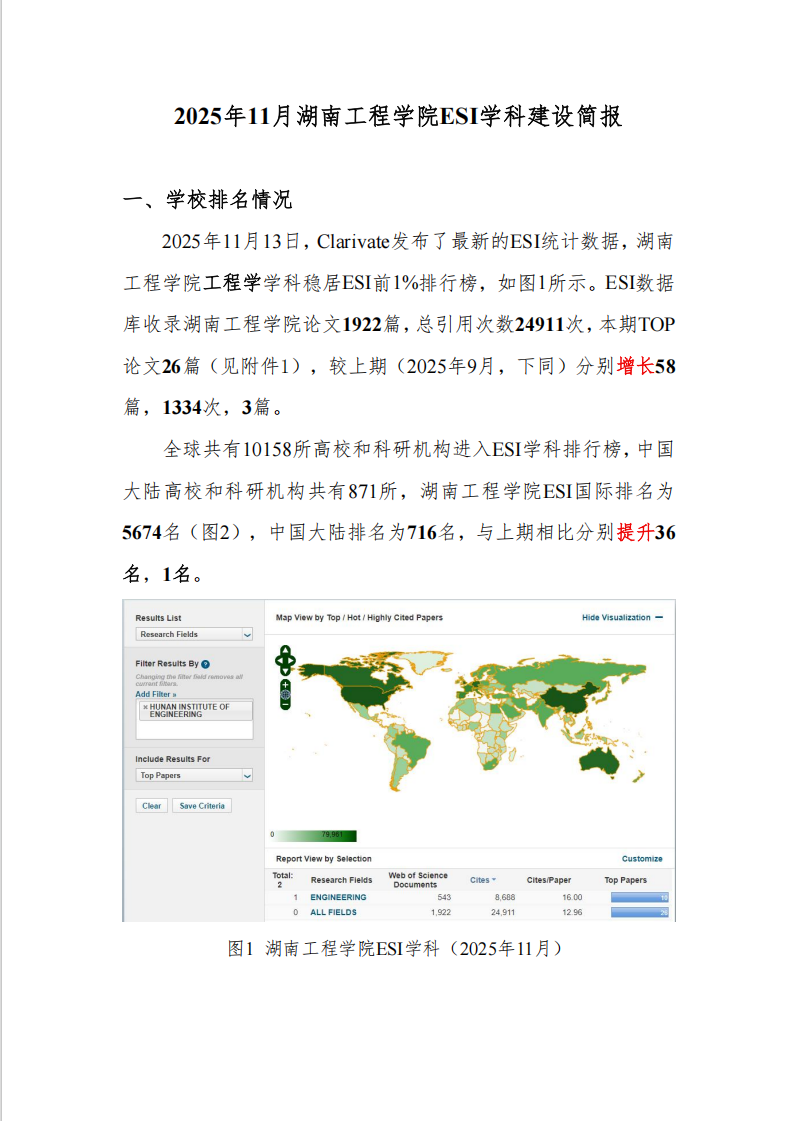 2025年9月湖南工程学院ESI学科建设简报