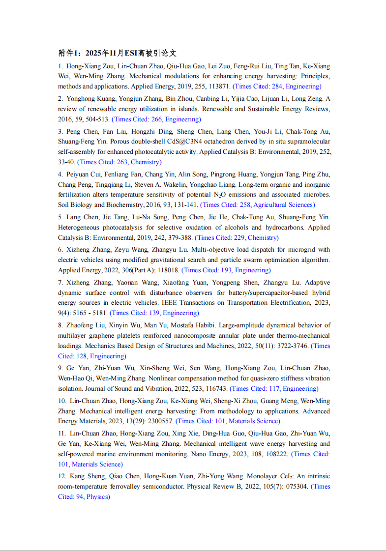 2025年11月湖南工程学院ESI学科建设简报